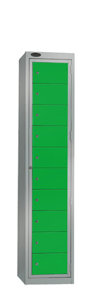Silver locker body with a choice of Pearly White, Dust, Dark Grey, Lime Yellow, Lime, Red or Electric Blue doors.