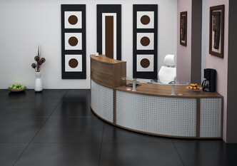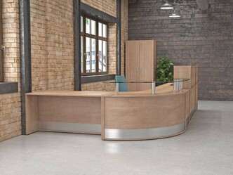 The larger semi-circular reception desk is ideal for those who require more space and can comfortably accommodate two members of staff.