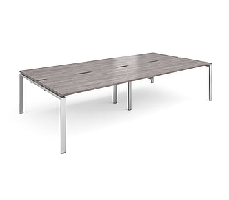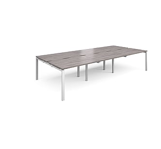 Six straight desks 1200mm x 800mm in a double back-to-back bench desk configuration giving an overall footprint of 3600mm x 1600mm.