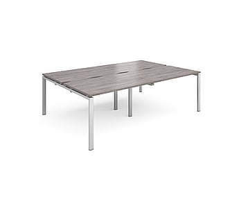 Four straight desks 1400mm x 800mm in a double back-to-back bench desk configuration giving an overall footprint of 2800mm x 1600mm.
