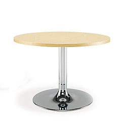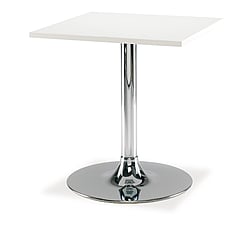 A complete range of lifestyle tables for a multitude of applications. Choose the style, shape, then the finish - a great choice to suit all tastes. Shown here with a chrome trumpet centre pedestal base at 745mm, dining table height.