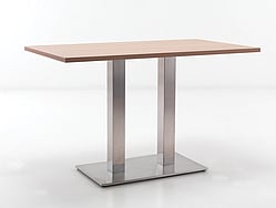 A complete range of lifestyle tables for a multitude of applications. Choose the style, shape, then the finish - a great choice to suit all tastes. Shown here with a brushed stainless steel twin pedestal base at dining table height.