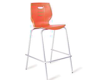 The new Geo polypropylene high stools features a unique shell designed for maximum comfort and 19mm diameter four leg steel frame with foot rail.