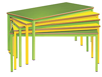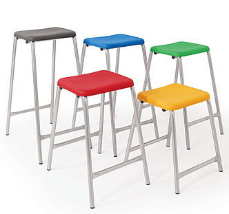 These tables will stack spirally up to six high for ease of storage. Six different heights available to suit all age ranges.