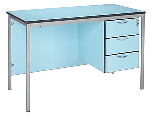 A practical range of teachers desks for any education setting. These tables come with a fully welded 25mm square tube frame and an 18mm MDF top with either a standard polished MDF bullnose edge or a Duraform PU edge detail.