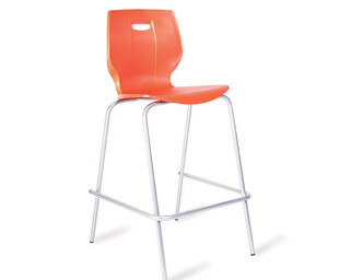 The new Geo polypropylene high stools features a unique shell designed for maximum comfort and 19mm diameter four leg steel frame with foot rail.