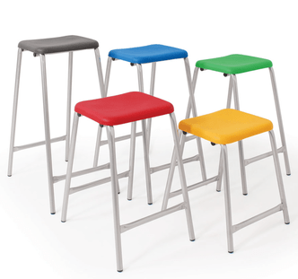 These tables will stack spirally up to six high for ease of storage. Six different heights available to suit all age ranges.