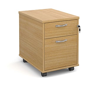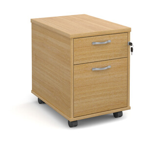 Contract 25 two drawer mobile pedestal. Fully locking drawers with finger pull handles across the top of each drawer.