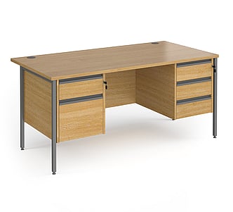 CH16S22 1600mm wide x 800mm deep X 725mm high H frame desk with two drawer pedestals