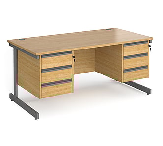 CC16S23 1600mm wide x 800mm deep X 725mm high cantilever framed desk with 2 x three drawer pedestals