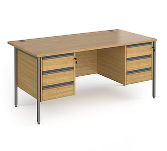 CH16S33 1600mm wide x 800mm deep X 725mm high H frame desk with 2 x three drawer pedestals
