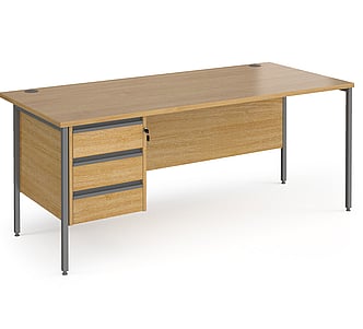 CH16S3 1600mm wide x 800mm deep X 725mm high H frame desk with three drawer pedestal