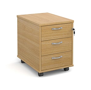 Contract 25 three drawer mobile pedestal. Fully locking drawers with finger pull handles across the top of each drawer.