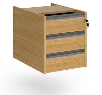 Contract 25 three drawer fixed pedestal. Fully locking drawers with finger pull handles across the top of each drawer.