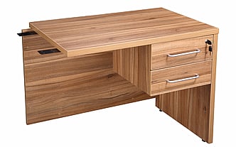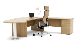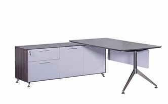 Executive desk universal return unit fitted with the executive pedestal. 30mm thick top and panel end. Can be fitted either to the left or right hand side of the bow front desk.