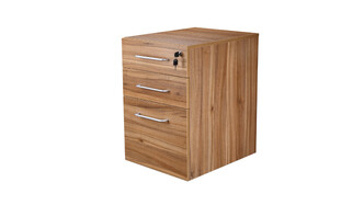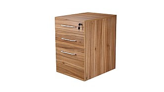 Full height executive mobile pedestal with three lockable drawers and silver handles. 30mm thick top. Dimensions are 438mm wide x 600mm deep x 695mm high.