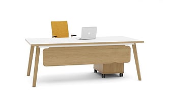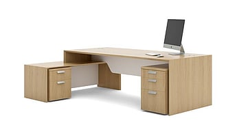 A choice of three veneers: Oak, Cherry and Maple and the additional ability to stain to sample ensures that Corniche will enhance any office environment. High quality materials, craftsmanship and close attention to detail is typical of the range and is exemplified by the solid sculptured wooden pen tray which is available for all Corniche pedestals.