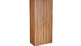 1800mm tall double door executive cupboard complete with four shelves and silver handles. 30mm thick top. Dimensions are 800mm wide x 450mm deep x 1800mm high.