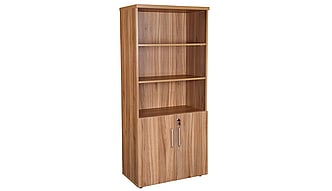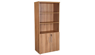 1800mm tall cupboard/bookcase combination storage unit with double doors fitted to the lower section.