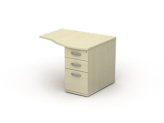Desk high open front radial end storage unit complete with one shelf and available in two widths.