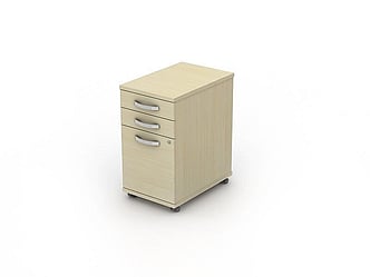 Standard three drawer desk under mobile pedestals with a choice of handles.
