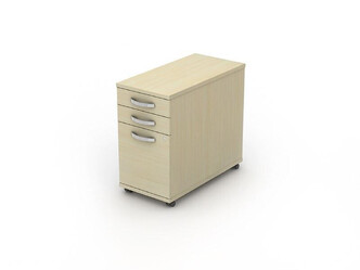Standard three drawer desk under mobile pedestals with a choice of handles.