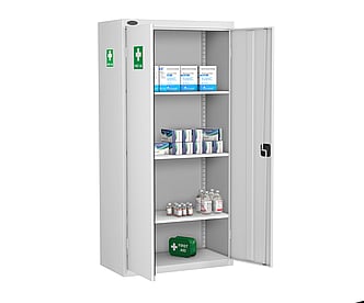 MED-R standard medical cabinet, 1780mm high x 915mm wide x 460mm deep supplied with three adjustable shelves