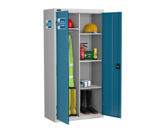 Personal Protection Equipment is mandatory in many working environments (PPE at work Regulations 1992 Part 5). Controlling and storing your safety equipment will be more effective in a specifically designed PPE Cabinet. Robust durable construction with reinforced doors. High visibility 270 degree labelling complying to BS5499-1.