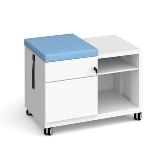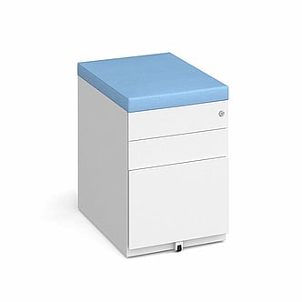 MMPW + BPED-PD three drawer mobile pedestal with upholstered seat pad