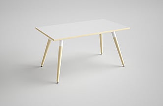 Jack meetings tables feature a metal underframe with stylish angled wooden legs. Underframes are finished in either gloss white or black.
