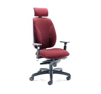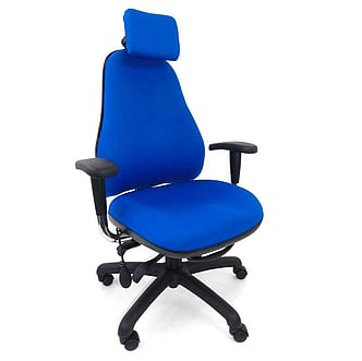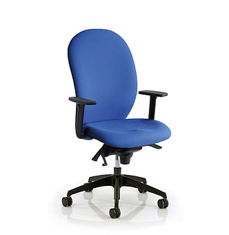 This chair features a generously proportioned seat and back with triple lever mechanism, enabling independent seat tilt, seat height and back rake adjustment. Ratchet adjustable back height. Seat slide mechanism to increase/decrease seating depth. Pump up lumbar support. Height adjustable arms, with lateral three point lift and click action.