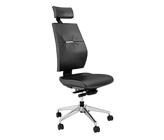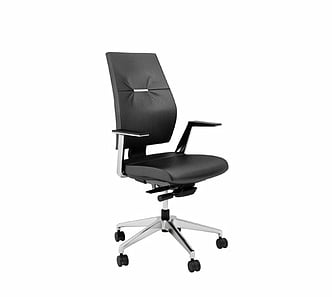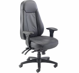 This chair is designed for 24 hour use and comes with a full specification mechanism which allows the user to gain the correct sitting position for long periods of work. It comes as standard with Asynchro torsion, ratchet back height adjustment, forward tilting seat, seat depth adjustment for the taller user and height adjustable arms and is upholstered in black leather. Seat height ranges from 490mm to 550mm.