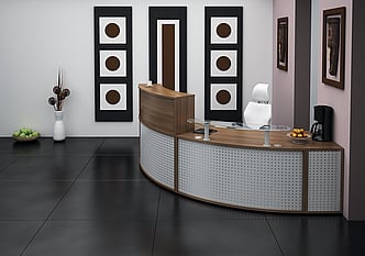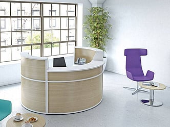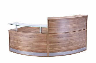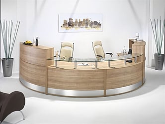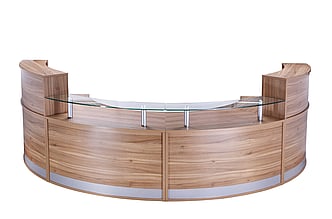 The larger semi-circular reception desk is ideal for those who require more space and can comfortably accommodate two members of staff.