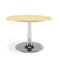 A complete range of lifestyle tables for a multitude of applications. Choose the style, shape, then the finish - a great choice to suit all tastes. Shown here with a chrome trumpet centre pedestal base at 745mm, dining table height.