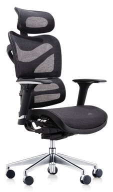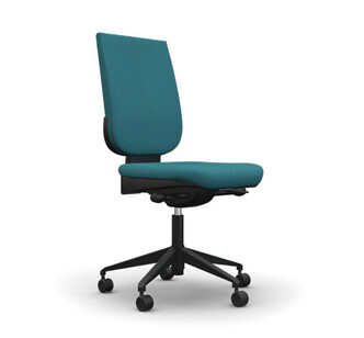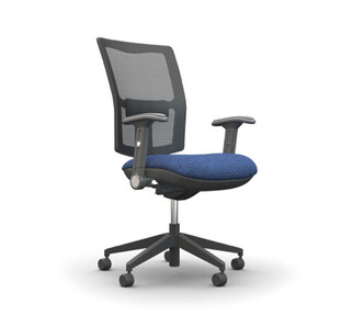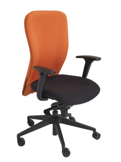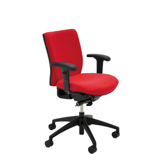 This chair features a generously proportioned seat and back with triple lever mechanism, enabling independent seat tilt, seat height and back rake adjustment. Ratchet adjustable back height. Seat slide mechanism to increase/decrease seating depth. Pump up lumbar support. Height adjustable arms, with lateral three point lift and click action.