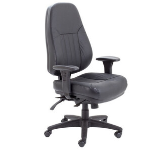 This chair is designed for 24 hour use and comes with a full specification mechanism which allows the user to gain the correct sitting position for long periods of work. It comes as standard with Asynchro torsion, ratchet back height adjustment, forward tilting seat, seat depth adjustment for the taller user and height adjustable arms and is upholstered in black leather. Seat height ranges from 490mm to 550mm.